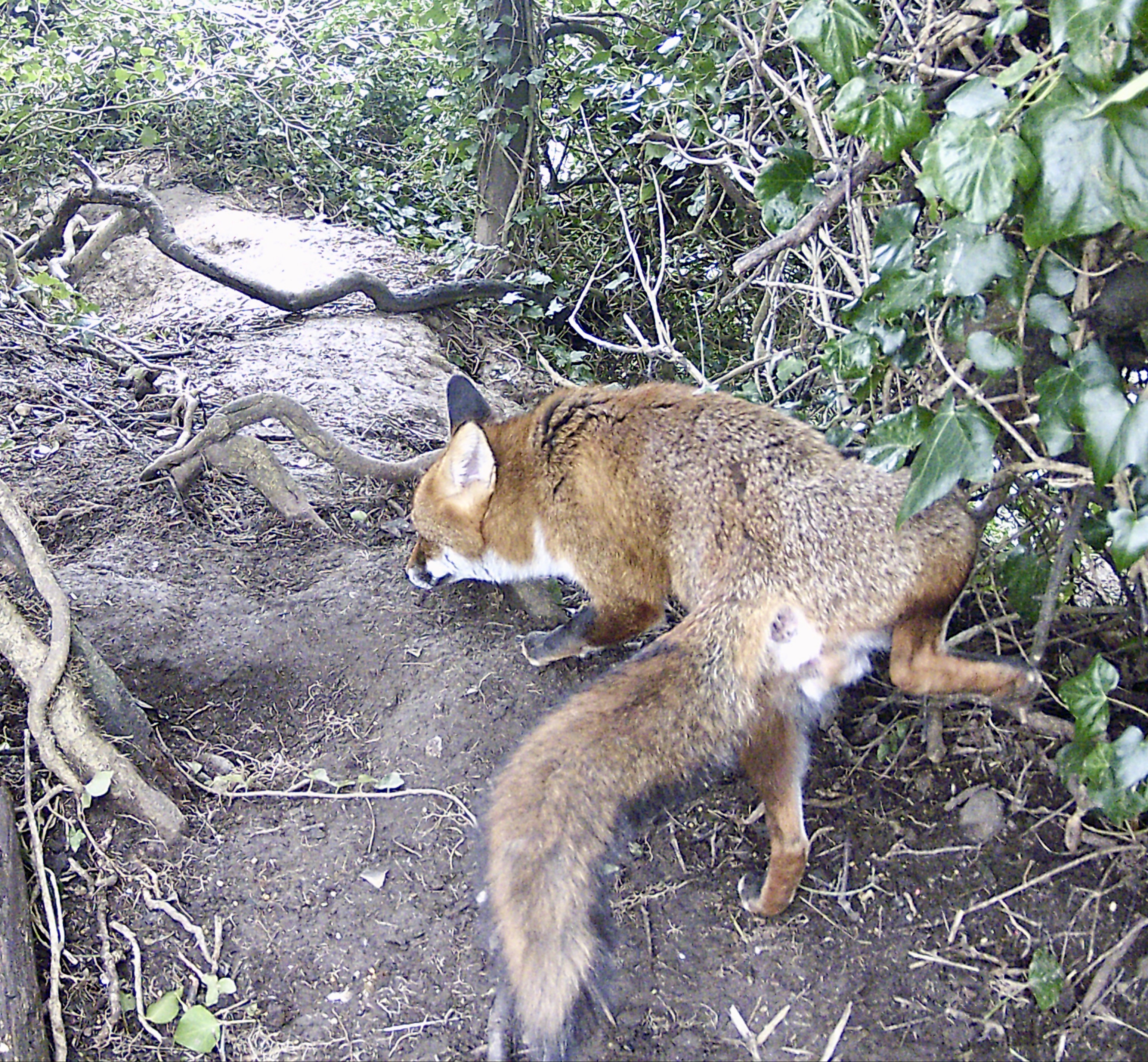 When we first came here, I was surprised to see male Foxes cocking their legs just like a male dog. For some reason it had never occurred to me that they would do that: