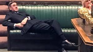 Bourne House is the home of the mother-in-law of ultra Conservative politician, Jacob Rees-Mogg – someone who’s Wikipedia entry says that his anachronistic upper-class mannerisms and consciously traditionalist attitudes are often seen as entertaining. Whether you find him entertaining or not, here he is infamously lounging during a debate in the Houses of Parliament last year: